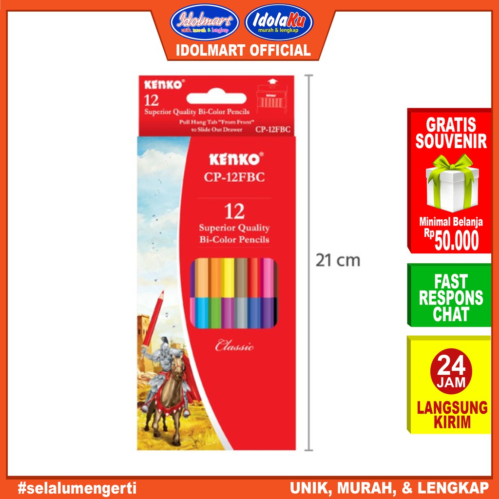 Produk IDOLMART Pensil warna kenko 12 warna Bicolor Cp -12 ini harganya adalah Rp. 14.500,00 dan saat ini sedang Diskon , Produk ini sendiri saat saya tulis Artikel ini sudah dilihat sebanyak kali dan sudah disukai sebanyak 11 kali.